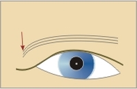 Durch die seitliche Senkung der Augenbraue wird die Oberlidhaut nach unten zum Lidrand verschoben.