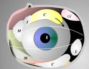Die verformbaren und beweglichen Fettläppchen füllen den Raum zwischen Auge, Augenmuskeln und Knochenwänden aus. Sie reichen von der Tiefe der Augenhöhle bis in die mittlere Schicht des Lides, wo sie von einer Membran (Septum) begrenzt werden. Bei einer Bindgewebsschwäche der Membran oder bei Zunahme des Fettvolumens bilden sie einen Wulst im Lid. Fettläppchen können verkleinert oder verlagert werden.Bei mangelndem Volumen der Fettläppchen erscheint das Lid ausgehöhlt. Die Fettläppchen dürfen bei einer Exkavation (Aushöhlung) nicht verkleinert werden, sondern es sollte versucht werden die Exkavation durch Verschiebung der Fettläppchen aufzufüllen.