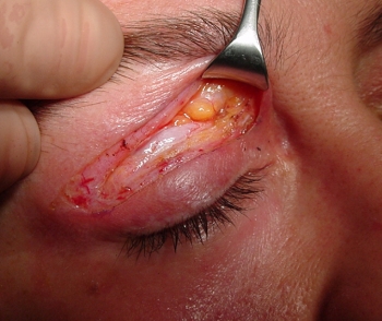 SEPTUM: Das Septum wird bei der mehrschichtigen Oberlidkorrektur eröffnet, um das zentrale Orbitafett freizulegen