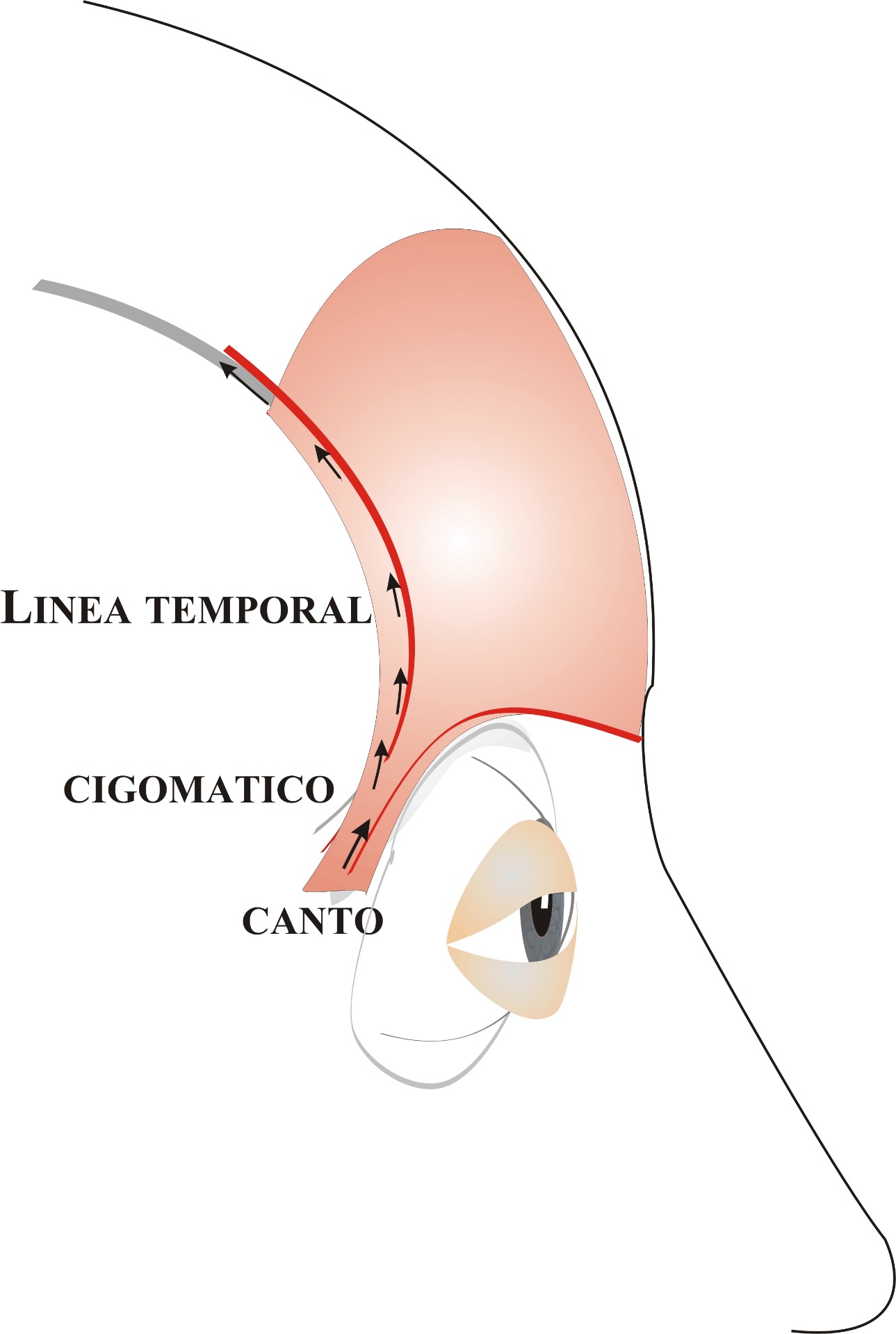 Fig.6: Hebung des Periost über ein Tunnel zwischen Kanthus Temporallinie.