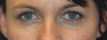 Durch die Senkung der Augenbrauen wird die Haut der Oberlider nach unten geschoben, sodass sich der Hautüberschuss stärker auswirkt und das Gesichtsfeld weiter einengt.