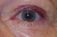 Vor der Operation besteht überschüssige Haut, die seitlich auf den Wimpern aufliegt. Das Gesichtsfeld ist geringfügig eingeengt.