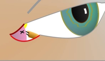 Wichtig ist die Fixation des Muskelbandes an der breiten Sehnenschicht unterhalb des Augapfels (Retraktorenschicht). Dadurch wird es wie ein Gürtel in seinen Schlaufen gehalten. Es muss kein Gewebe entfernt werden. Nachdem man die Verbindung der Muskelschicht mit der Sehnenschicht der Retraktoren wiederhergestellt hat (es handelt sich also um eine natürliche anatomische Verbindung, die durch Bindegewebsschwäche gelockert ist), sollte auch die horizontale Spannung des Lides mittels lateraler Kanthoplastik wiederhergestellt werden. Beides kann durch eine Inzision auf der Rückseite des Unterlides und durch einen kleinen Schnitt am Lidwinkel erfolgen.