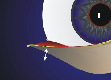 Der Verlust des Winkels am Tränenpünktchen bedeutet, dass sich das hintere Band gelockert hat. Das Tränenpünktchen ist nicht mehr nach hinten verankert und kippt nach vorne. Hinter dem Tränenpünktchen liegt die Bindehaut nicht mehr am Auge an, liegt also frei und neigt zur Verdickung und Verformung.