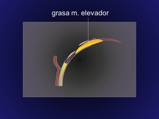 In allen Fällen erschwert das Vorhandensein von degenerativem Fett die chirurgische Korrektur, da die Zunahme des Fetts mit einem Mangel an fibroelastischem Gewebe wie der Whitnall-Aponeurose und dem Whitnall-Band sowie einer Infiltration von Muskelgewebe einhergeht.