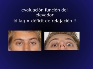 Das typischste Anzeichen für eine komplizierte erworbene Ptosis ist ein Lidretention. Bei Defekten im fibroelastischen Gewebe und Fettgewebsdegeneration senkt sich das Augenlid beim Blick nach unten weniger als der Augapfel, was als Entspannungsdefizit interpretiert wird. (Abb. 3)