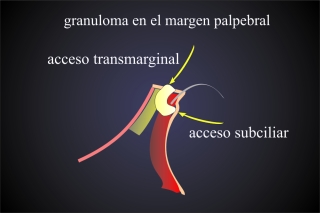 zu vermeiden. Ein Granulom am Lidrand wird über einen Zugang in der grauen