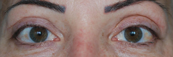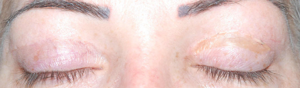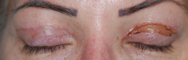 Abb.5: Zustand nach Blepharoplastik ex domo: Die Patientin klagt über fehlenden Lidschluss.