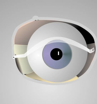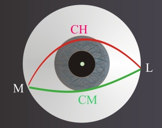 optische Zentrum. Das Oberlid liegt auf einer Meridiankurve, die den Effekt des