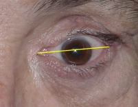 lateralen Kanthus. Die gelbe Linie zwischen den Kanthi verläuft durch das