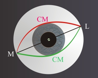 Die sechs Punkte im dreidimensionalen Raum des Lidrandes markieren Scheitelpunkte und Winkelpunkte. Sie hängen sowohl von den Vektoren der Lidbänder in der Tiefe, als auch von oberflächlichen Verhältnissen ab.