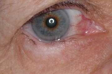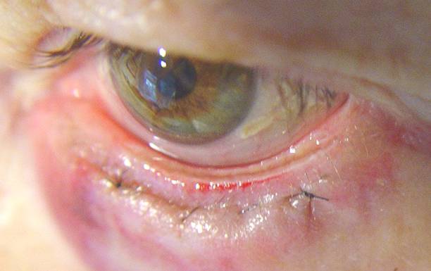 Nach der Entfernung der Lidkante mit allen Wimpern wurde der Lidrand rekonstruiert.