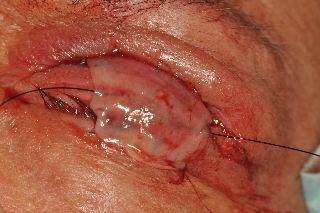 Schleimhauttransplantation zur Verlängerung der verkürzten Bindehaut auf der Rückseite des Lides