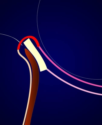Abb. 11: Rundung der Lidkante (rote Linie) mit Abweichung der Richtung des Wimpernwachstums.