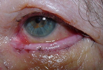 Abb. 4.: Das Hauttransplantat wurde aus dem Oberlid gewonnen und in den Unterliddefekt eingefügt.