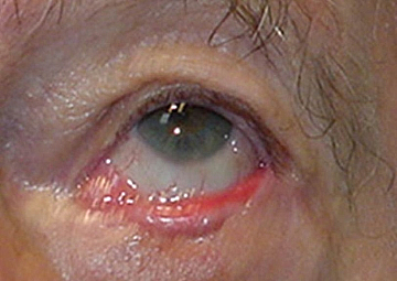 Abb. 13: Präoperativ: evertierter und deformierter Lidrand.