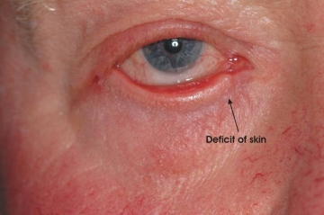 Abb. 7: Präoperativ: kompliziertes Ektropium mit einem Hautdefizit von 10 mm.