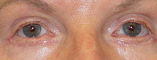Abb. 8: Postoperativ nach Transplantation von Vollhaut aus den Oberlidern.