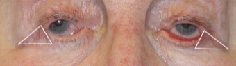 Telekanthus mit Unterlid-Ektropium. Man sieht das laterale Dreieck mit