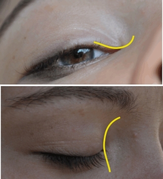 Das „skin redraping“ (Hautverschiebung) ist eine elegante Technik, die den Hautüberschuss des Oberlides durch eine supraziliare Inzision zwischen Wimpernreihe und Lidfurche über die gesamte Breite mobilisiert, um einen breiten Hautlappen nach medial zu transponieren. Die Technik gerät an ihre Grenzen, wenn die vom konvexen Oberlid nach medial verschobene Hautfläche für die Deckung des konkaven Defektes am medialen Kanthus nach unten nicht ganz ausreicht und die Traktion nicht vollständig beseitigt werden kann. Eine supraziliare Inzision 2-7 mm oberhalb der Wimpernreihe über die gesamte Breite des Oberlides angelegt und mündet medial in einer horizontalen Inzision der Epikanthusfalte (Epikanthotomie). Der darüberliegende Hautüberschuss wird vom Orbikularismuskel abpräpariert und nach medial verschoben.