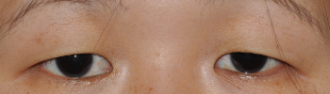 Präoperativ: Asiatischer Epikanthus mit bogenförmiger Falte, die die Karunkel überdeckt. Als Nebenbefund findet sich eine Senkung der vorderen Lidlamelle an den Oberlidern.