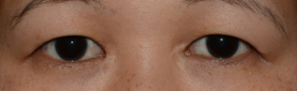 Postoperativ: Durch die Hautverschiebung nach medial wurde die Epikanthusfalte korrigiert.