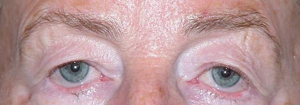 Vor der Blepharoplastik ist der Seitenunterschied kaum auffällig. Das linke Lid steht weniger als 1mm tiefer auf dem Auge und die linke Braue steht höher.