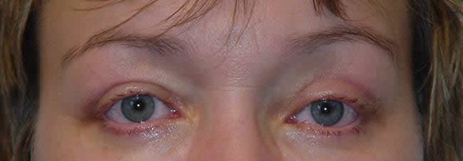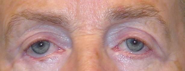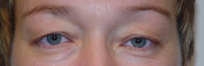 Fazit: auch eine geringe Ptosis sollte immer mitkorrigiert werden, auch wenn sich der Aufwand verdoppelt. Siehe Ptosis (Lidsenkung).