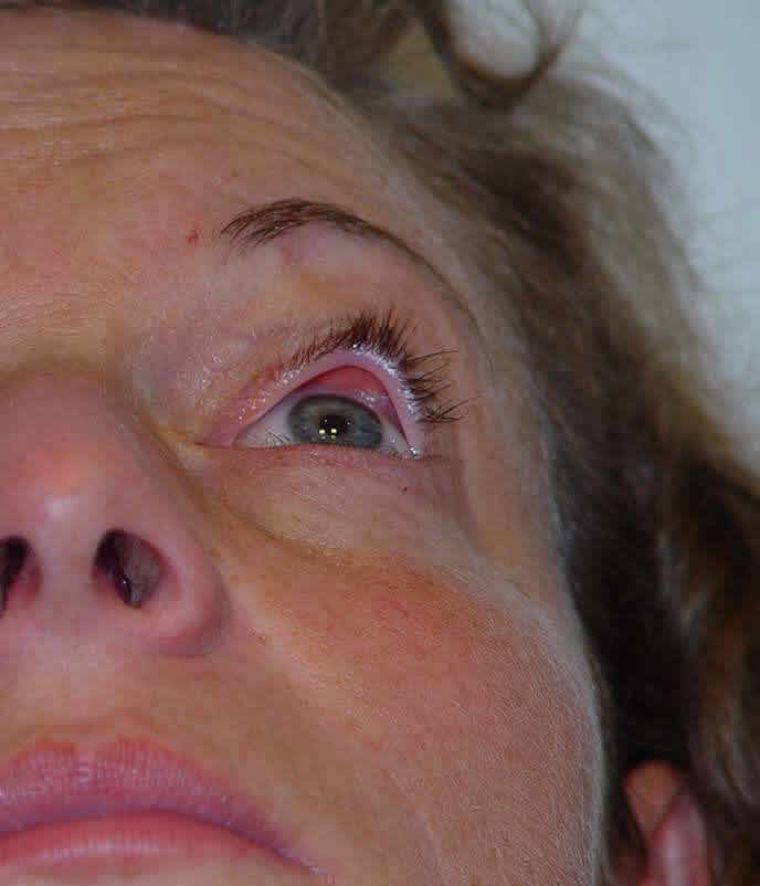 Retraktion durch endokrine Orbitopathie (Morbus Basedow):