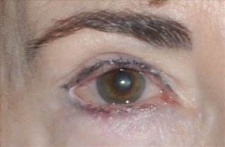 Kanthus rund nach Komplikation einer Blepharoplastik. Ursache: Retraktion der