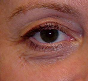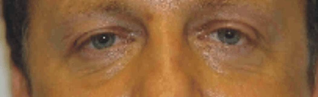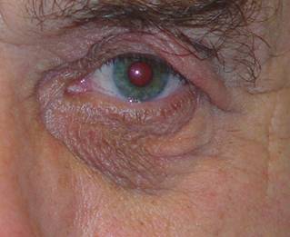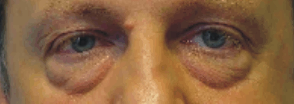 Ausgeprägte Unterlidlipome medial, zentral und lateral.