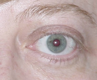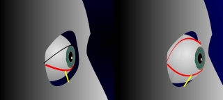 (Hornhautlimbus) zeigt die Abweichung. Durch die Kraft des Musculus orbicularis