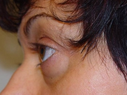 wird das Unterlid auf eine kürzere Kreisbahn gezogen.