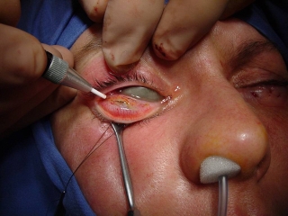 transkonjunktivaler Durchtrennung der Retraktoren und lateraler Kantoplastik in