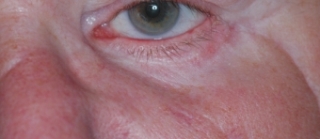 Nach der Operation: Enlastungsinzision, Anlegen der hinteren Lidlamelle, laterale Kanthoplastik und freie Hauttransplantation aus den Oberlidern.