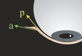 Der tangentiale Vektor des hinteren Lidbandes wird dadurch verstärkt, um die Position des Tränenpünktchens zu korrigieren.