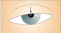 Durch die überlappende Hautfalte ensteht ein Gesichtsfelddefekt.