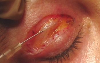 SEPTUM: Das Septum wird bei der mehrschichtigen Oberlidkorrektur eröffnet, um das zentrale Orbitafett freizulegen
