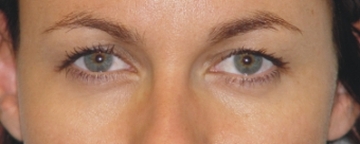 Durch die Senkung der Augenbrauen wird die Haut der Oberlider nach unten geschoben, sodass sich der Hautüberschuss stärker auswirkt und das Gesichtsfeld weiter einengt.