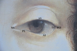 "Biangel" der Lidöffnung: es liegt eine komplizierte, lanzettförmige geometrische Geometrie mit verschiedenen Kurvenformen zugrunde.