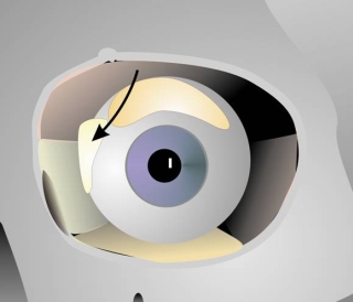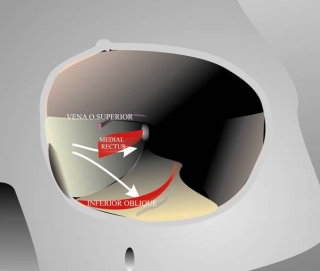 Ein bewährter Zugang zu den medialen Quadranten der Orbita führt durch die Lidfurche des medialen Oberlides und durch das Kompartiment des medialen Fettkörpers. Er entspricht dem üblichen Zugang zum medialen Orbitafett bei der Oberlid-Blepharoplastik.