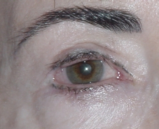 Kanthus rund nach Komplikation einer Blepharoplastik. Ursache: Retraktion der