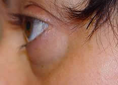 Ausgeprägte Unterlidlipome medial, zentral und lateral.